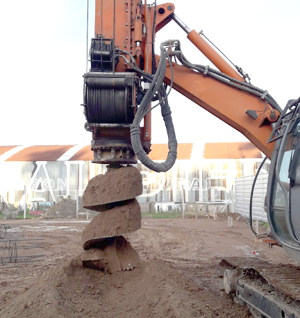 Desmonte y limpieza de terreno con máquina. Excavación con maquinaria para la ejecución de los pozos de cada base. Zanjeo para tensores con perfilados